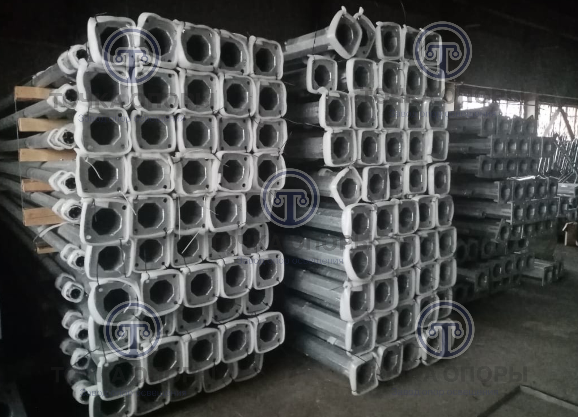 Складская программа включает стальные силовые и несиловые опоры освещения с комплектующими, а также молниеотводы в горячем цинке.